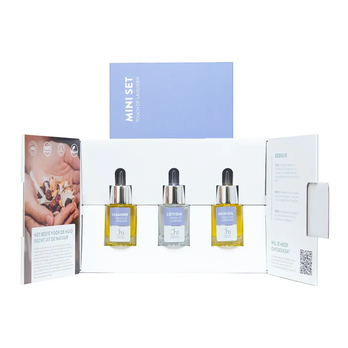 Inhoud: 15 ml Cleanser, 15 ml Skin oil en 15 ml Lotion.
